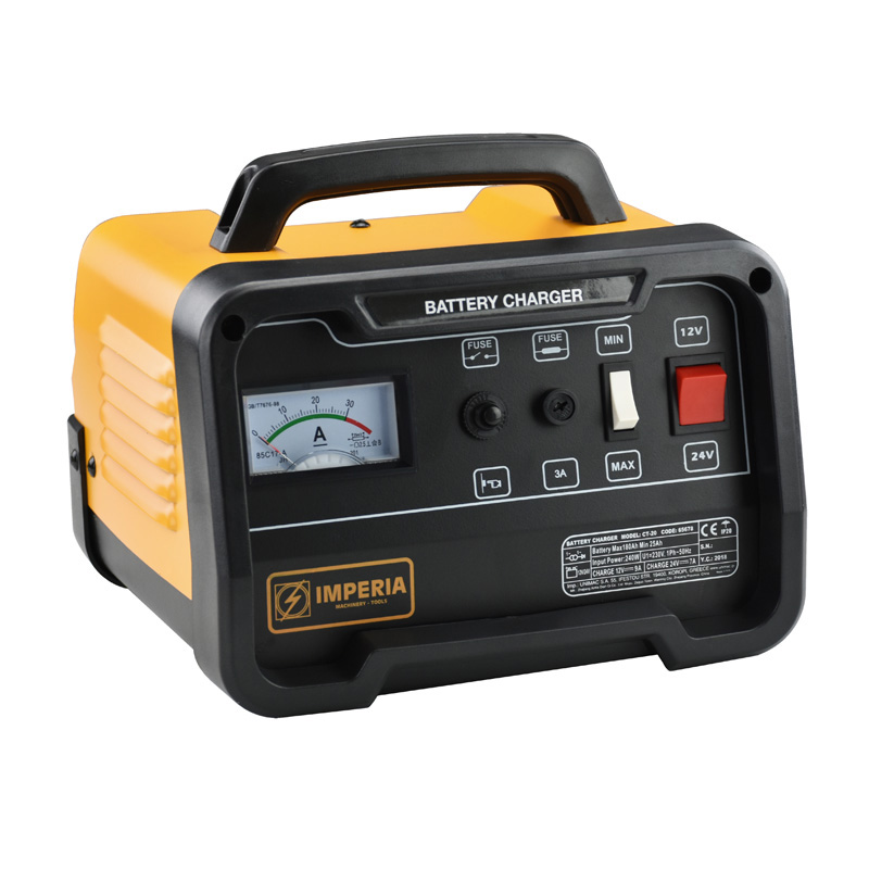 Φορτιστής Μπαταριών 20Amp Max., με Αμπερόμετρο, Θερμικό Προστασίας στην Έξοδο, Επιλογέα 12V / 24V, Κατάλληλος για Μπαταρίες Μολύβδου