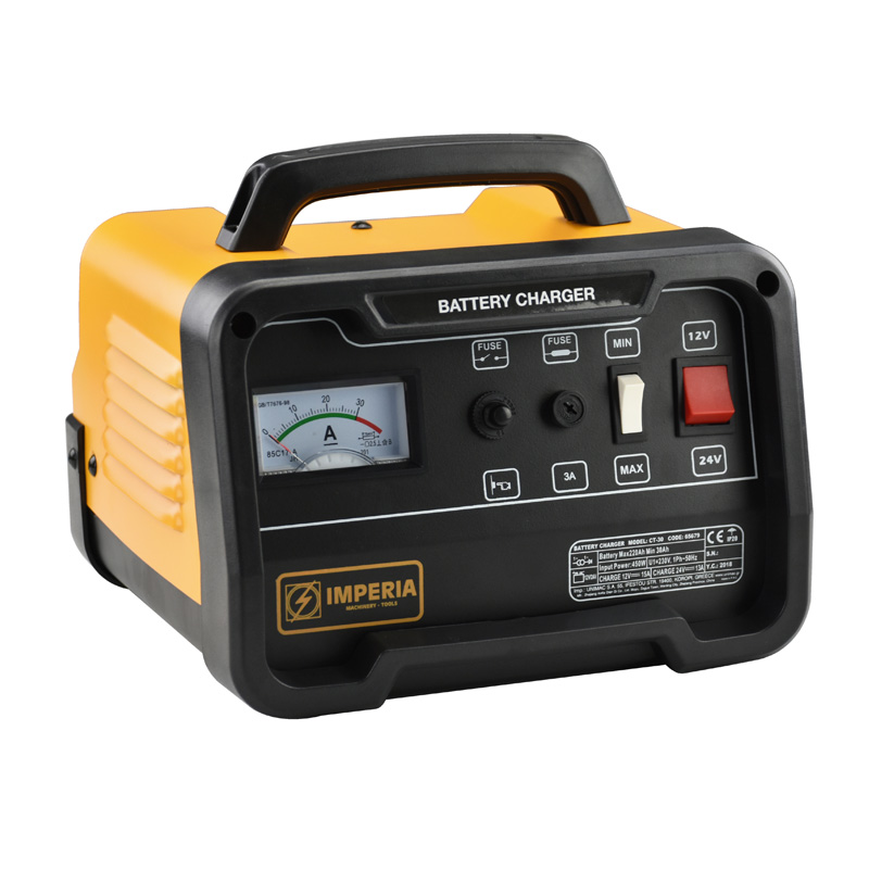 Φορτιστής Μπαταριών 30Amp Max., με Αμπερόμετρο, Θερμικό Προστασίας στην Έξοδο, Επιλογέα 12V / 24V, Κατάλληλος για Μπαταρίες Μολύβδου