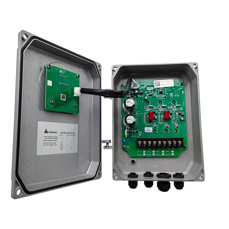 Πίνακας ελέγχου για αντλία φωτοβολταϊκών 48V, ειδικά σχεδιασμένος για το μοντέλο NAKAYAMA NP2220. Παρέχει προστασία από υπερτάσεις και βλάβες και εξασφαλίζει ομαλή, μακροχρόνια λειτουργία της αντλίας. Χρησιμοποιείται ως μέρος του συστήματος ελέγχου μεταξύ πάνελ και αντλίας.