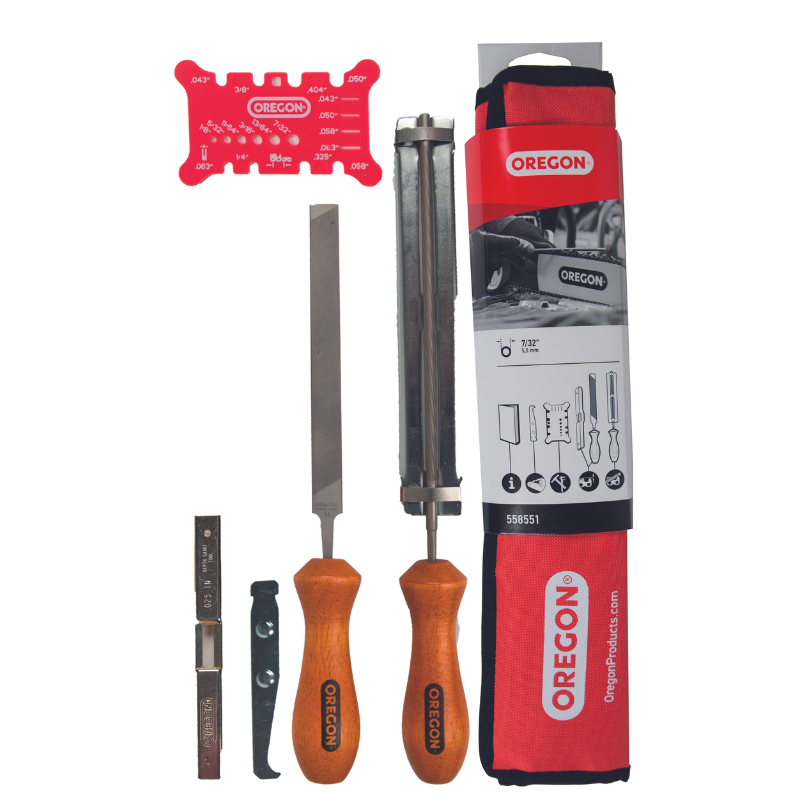 Κιτ τροχίσματος για αλυσοπρίονα OREGON 3/8'', περιλαμβάνει τα απαραίτητα εργαλεία/λίμες και πρακτική θήκη για ασφαλή αποθήκευση. Προορίζεται για γρήγορη και εύκολη συντήρηση και ακόνισμα αλυσίδων.