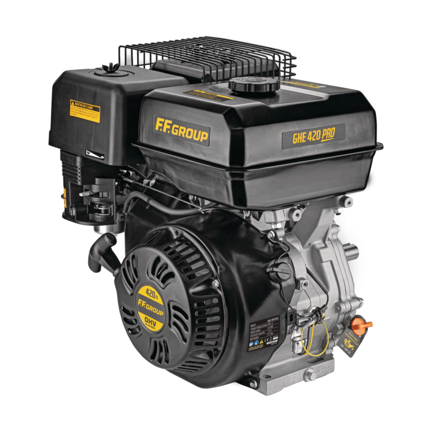 Ο GHE 420E Q PRO είναι οριζόντιος βενζινοκινητήρας (air‑cooled, 4‑stroke) 420 cc, σχεδιασμένος ως μονάδα κίνησης για μηχανήματα κήπου (π.χ. πλυστικά, αντλίες, φυσητήρες). Έχει χειροκίνητο και ηλεκτρικό εκκινητή, σύστημα προστασίας χαμηλού λαδιού και μεγάλο ρεζερβουάρ (~6,8 L).